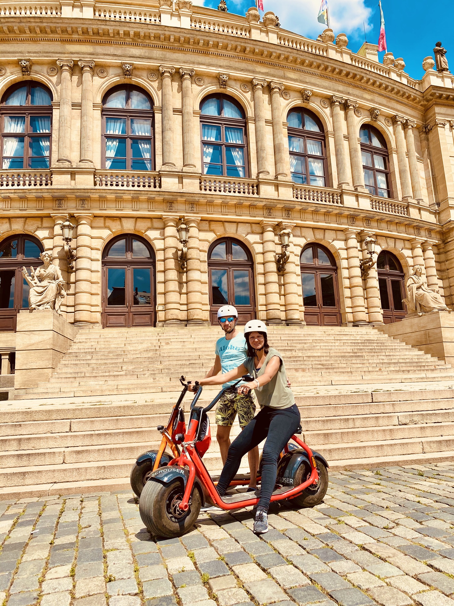You will be accompanied by an experienced guide who will point out all the amazing sights and attractions, but will also be able to help you with anything you need during your journey through Prague. Our staff will give you a safety briefing and allow you to test drive the SCROOSER before you set off. We will also provide you with a helmet and other accessories (backpack, gloves, raincoat, sunglasses) Don't worry, it's not as long as it sounds.